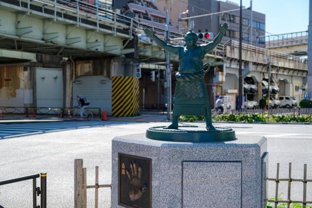 また、街を少し歩いてみると、「力相撲像」「歴代横綱の石像」を見ることができ改めて「相撲の街」に来たという事を実感させられます