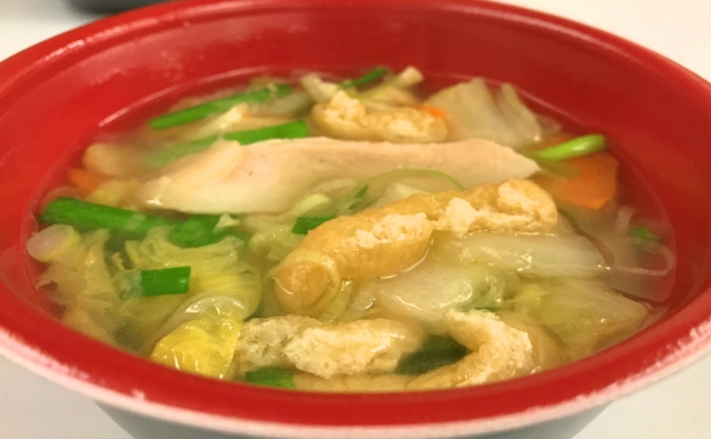 鍋には、シイタケ、えのき、えび、揚げ、ねぎ、つくね、白菜などとてもたくさんの具が入っていて、ビールを飲みながら食べるちゃんこはとても美味しかったです!