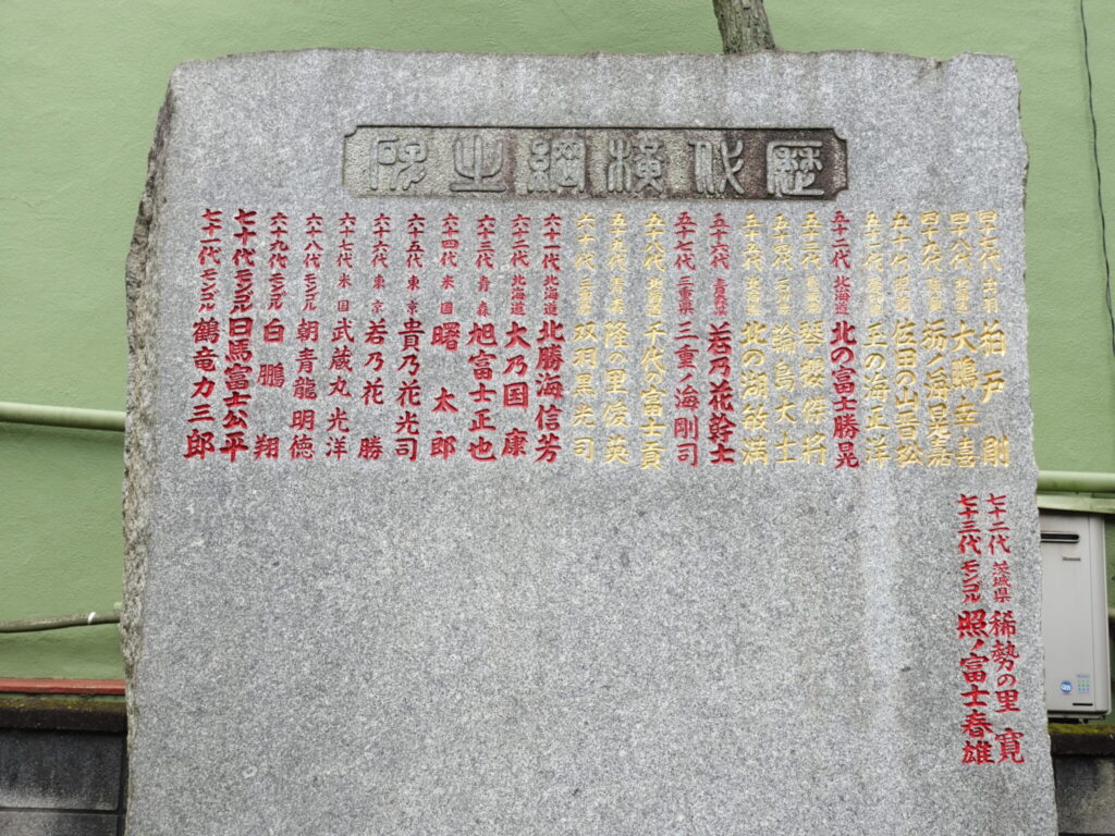 • 横綱力士碑: 境内には歴代の横綱の名が刻まれた巨大な「横綱力士碑」があります。新横綱が誕生すると、ここで土俵入り奉納が行われるのが恒例となっています