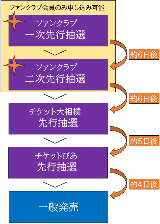 そのため、チケットを確実に取るには「チケット発売の流れ」を確実に把握しておく必要があります。