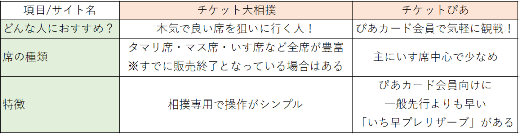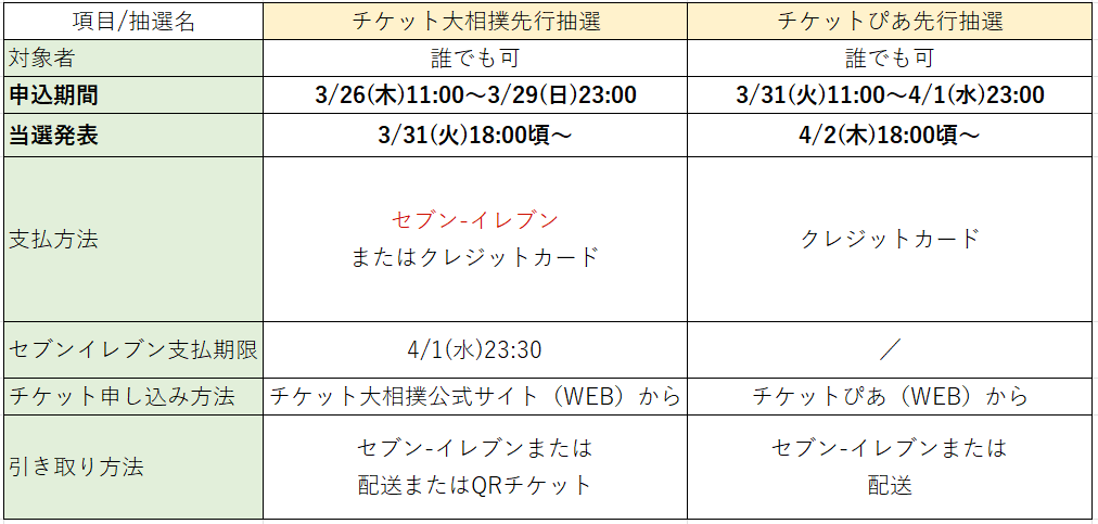 また、「チケット大相撲」と「チケットぴあ」の先行抽選を合わせてインターネットでの先行抽選と呼びます。