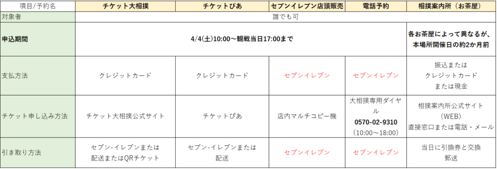 相撲案内所でのチケット予約は「先着順」であるため、これまで述べてきた予約方法同様に早めの準備が必要です