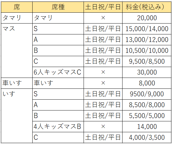 そのため、人気席であるタマリ席や正面マス席は販売終了となっているケースが多くあります - ライバルの多さ