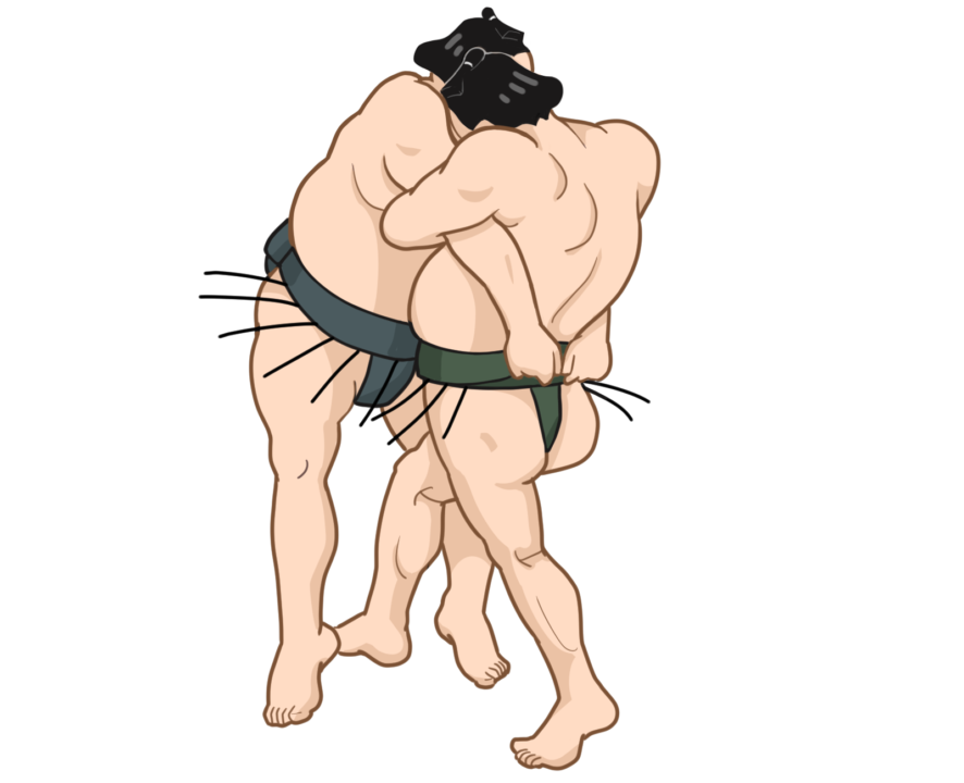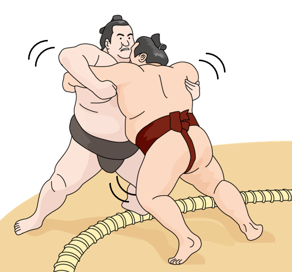 がぶり寄りとは、四つに組んだ状態で相手を寄り切ろうとするときに、自分の腰を上下に動かして相手を浮かせながら寄っていくことを言います