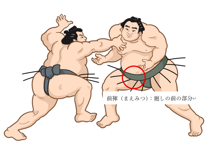 前褌(まえみつ)とは、力士が締める廻しのお腹の前の部分のことを指します
