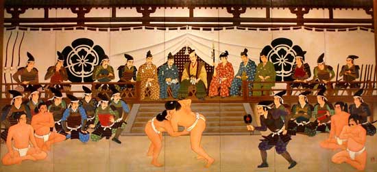 当時の戦場は、最終的には組み合いの乱闘になることが多かったため、相撲は最高の格闘技術訓練でした。このように、当時の相撲は戦国時代という戦いの時代を生きる上で欠かせない存在となっていました